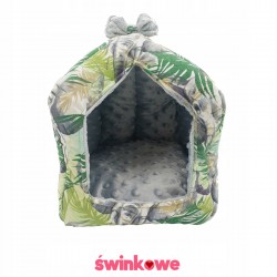 Idealiai pritaikytas namelis kiaulėms, kurtams ar ežiams. Saugus ir patogus, su narvelio tvirtinimo elementais. Matmenys: maždaug 20x20 cm, aukštis maždaug 25 cm Medžiaga: 100 % medvilnė, minky vilna, 200 g avikailio užpildas Papildoma išimama pagalvėlė viduje Galima skalbti skalbyklėje žemoje temperatūroje iki 40 laipsnių C, negalima chloruoti ir džiovinti džiovyklėje Siūta kruopščiai ir preciziškai , rankų darbo. Nepamirškite, kad prie šio namelio visada galite pridėti kitų derančių priedų, pavyzdžiui, hamaką, tunelį arba vandeniui atsparų kilimėlį. Sukurkite savo rinkinį dabar. Pagaminta pagal jūsų užsakymą.