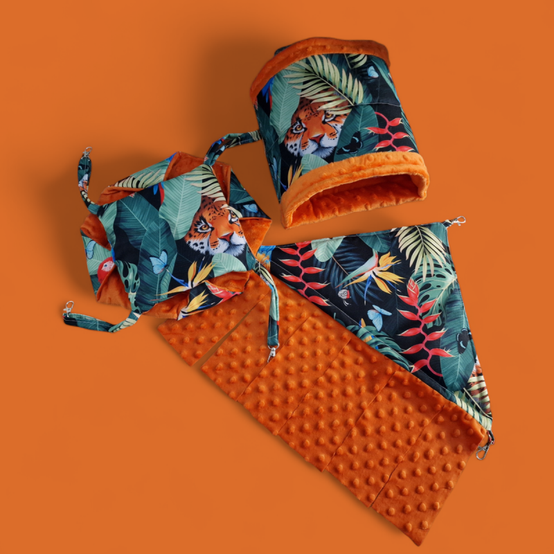 Medžiaga: 100 % vandeniui atsparus poliesteris oksfordo tipo, minky vilna