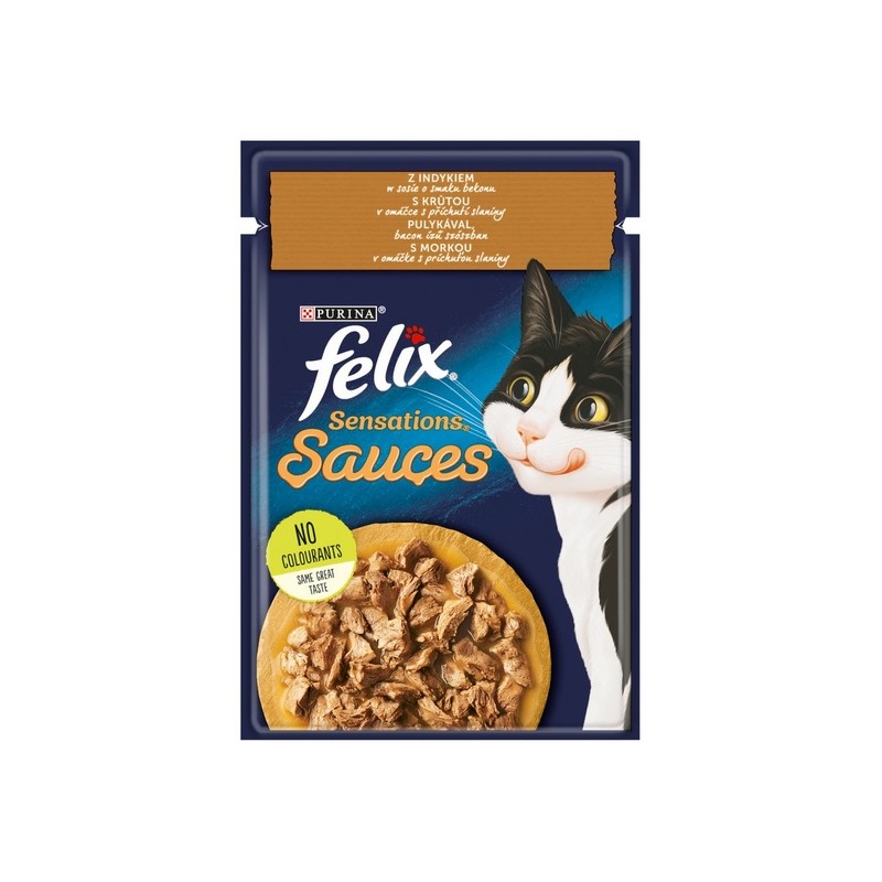 Felix "Sensations Sauces Surprise " - tai gardžių patiekalų linija, sukurta iš švelnių mėsos ar žuvies kąsnelių, pamerktų į įvairius aromatingus padažus, kurie savo skoniu nustebins bet kurią katę. Šie patiekalai atrodo, kvepia ir yra tokie skanūs, kad jūsų katė negalės jiems atsispirti. Ir tai dar ne viskas! Šie gardūs patiekalai yra pilni maistinės vertės, kad šeriant pagal ant pakuotės pateiktas instrukcijas 100 % patenkintų kasdienius jūsų katės poreikius.
