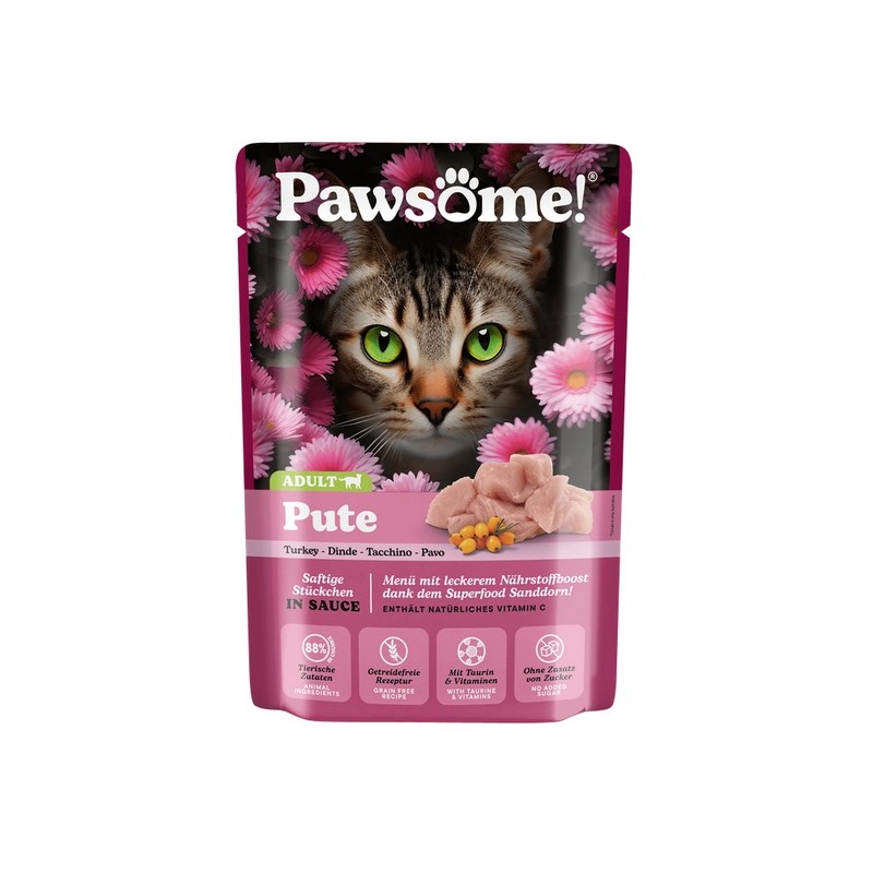 Patiekite savo katei patiekalą Pawsome su gardžiu padažu ir nuostabiai sultinga mėsa. Kaip tik subtiliam gomuriui, be nepakartojamo skonio, jis suteikia joms visų svarbių maistinių medžiagų. Ir kitą nuotykį galėsite pradėti su naujomis jėgomis.