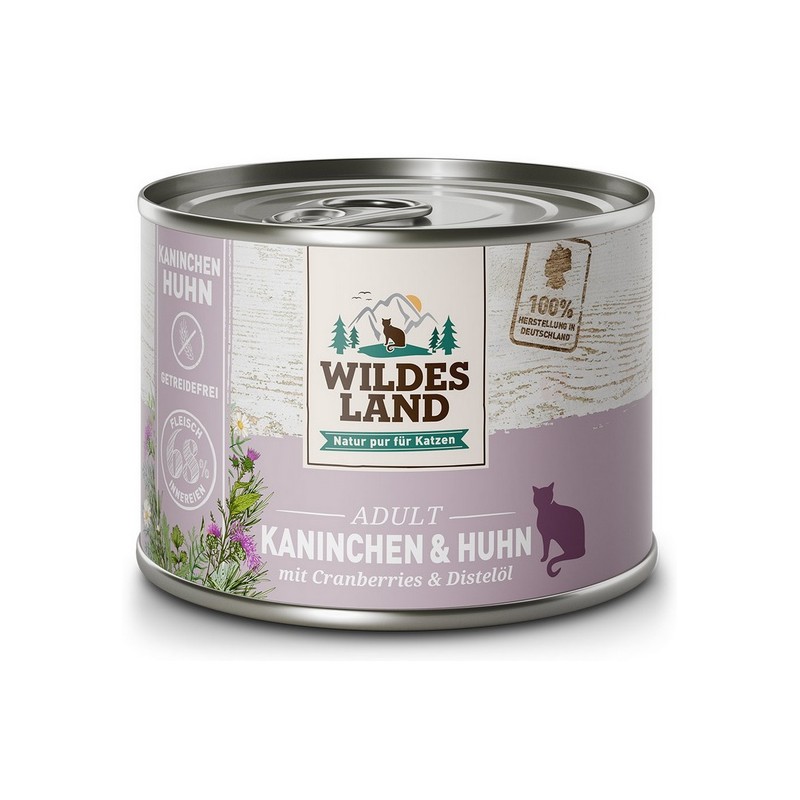 Wildes Land Cat Classic Adult Kaninchen & Huhn konservų dėžutė 200g