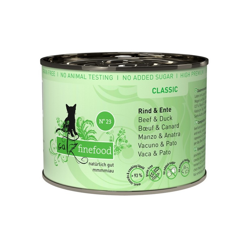 Specialus katėms skirtas maistas - vertingas maistas mūsų augintiniams. "Catz finefood N°23" sudėtyje yra daug švelnios jautienos, anties ir vertingų priedų, tokių kaip spanguolės ir alavijas. Be konservantų, dažiklių ir skonio stipriklių. Sudėtyje nėra GMO. Mmmmiau!