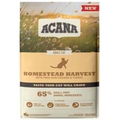ACANA Homestead Harvest suaugusioms katėms suteikia vertingų paukštienos baltymų, kurie yra lengvai virškinami ir lengvai virškinami. Jame yra iki 65 % paukštienos sudedamųjų dalių, puikiai pamaitinančių jūsų katę
