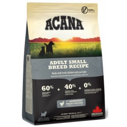"ACANA Adult Small Breed" sudėtyje yra visaverčių gyvulinių baltymų: vištienos ir jūros lydekos. Šie ingredientai į mūsų virtuvę pristatomi ŠVIEŽI arba ŽALIA.