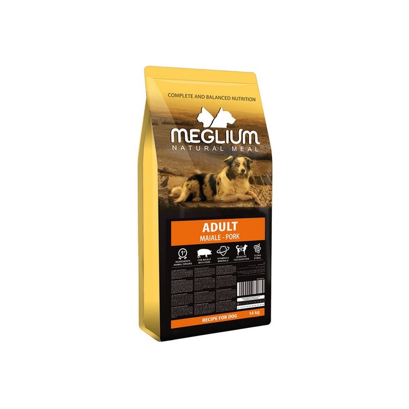 Meglium Meglium Dog Adult Pork yra visavertis šunų maistas, sukurtas jūsų augintinio sveikatai, gyvybingumui ir džiaugsmui kiekvieną dieną!