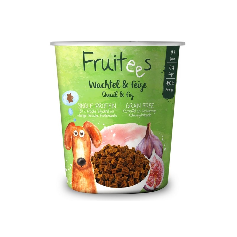 Fruitées su putpelėmis ir figomis yra itin skanus ir sultingas skanėstas su min. 20 % šviežios mėsos, kad Jūsų šuo turėtų sveiką treniruočių atlygį ir užkandį kiekvienai progai.
