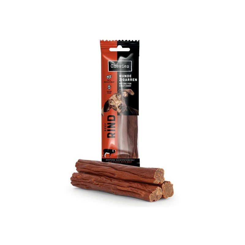 Chewie's Dog Cigars - puikus užkandis tikriems žinovams. O geriausia: juos galima vartoti ne tik nuo 18 metų, bet ir šuniukams! Dėl malonios tekstūros juos mėgsta ir vyresni šuniukai.