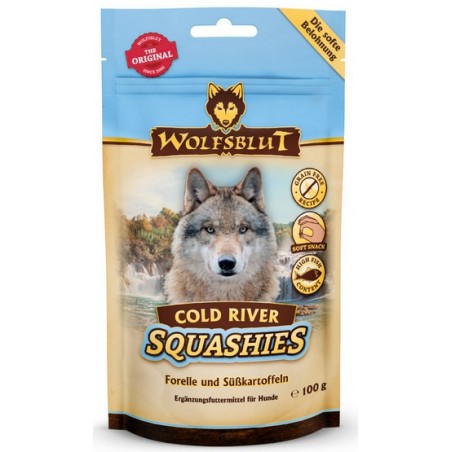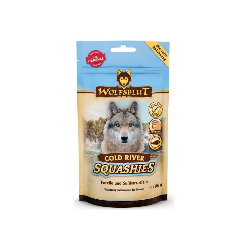 Wolfsblut Squashies - tai minkšti užkandžiai šunims, kuriuose nėra grūdų ir glitimo, daug mėsos. Be to, "Squashies" sudėtyje nėra pramoniniu būdu pagaminto cukraus, dažiklių, kvapiųjų medžiagų, atraktantų, užpildų ir konservantų bei cheminių antioksidantų
