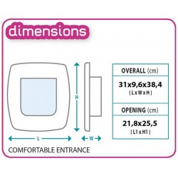 Be to, "Swing 5", 7, 9, 11 ir 15 modeliuose įrengtas 5 cm ilgio tunelis, todėl dureles galima pritaikyti prie bet kokio dizaino. Be to, "Swing 5", 9, 11 ir 15 modeliuose esančius tunelius galite apkirpti, kad jie geriau priglustų (apkirpimas netaikomas "Swing 7" modeliui, kuriame įrengtas švelnus magnetinis mechanizmas).