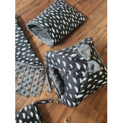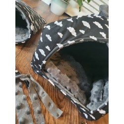 Idealny zaprojektowany domek dla Twojej świnki, szura czy jeża. Bezpieczny i wygodny, z mocowaniami do klatki. Wymiary: ok 20x20 cm, wysokość ok 25 cm Materiał: 100% bawełna, polar minky, wypełnienie owata 200 g Dodatkowa wyjmowana poduszka w środku Można prać w pralce w niskich temperaturach do 40 st. C, nie chlorować i nie suszyć w suszarce Szyte z dokładnością i starannością , handmade. Pamiętaj, że zawsze możesz domówić inne pasujące do tego domku akcesoria takie jak hamak, tunel, czy matę wodoodporną. Stwórz swój zestaw już teraz. Produkt szyty na Twoje zamówienie.