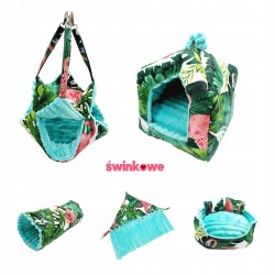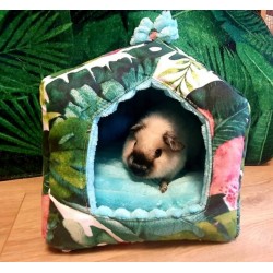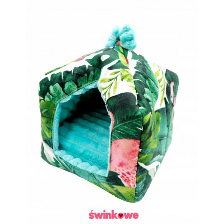 Idealny zaprojektowany domek dla Twojej świnki, szura czy jeża. Bezpieczny i wygodny, z mocowaniami do klatki. Wymiary: ok 20x20 cm, wysokość ok 25 cm Materiał: 100% bawełna, polar minky, wypełnienie owata 200 g Dodatkowa wyjmowana poduszka w środku Można prać w pralce w niskich temperaturach do 40 st. C, nie chlorować i nie suszyć w suszarce Szyte z dokładnością i starannością , handmade. Pamiętaj, że zawsze możesz domówić inne pasujące do tego domku akcesoria takie jak hamak, tunel, czy matę wodoodporną. Stwórz swój zestaw już teraz. Produkt szyty na Twoje zamówienie.
