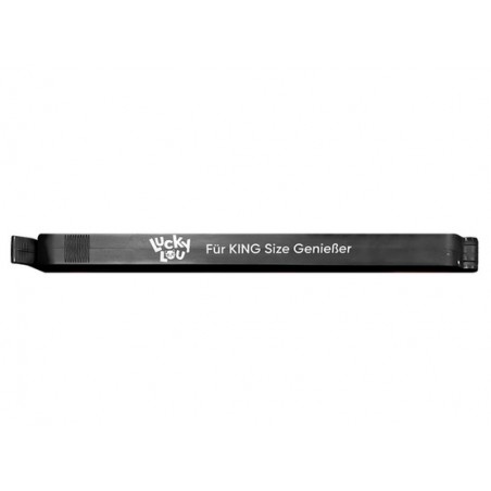 Plastikowy klips zamykający w kolorze czarnym i z białym logo Lucky Lou.