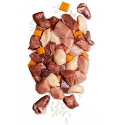 Meat Lovers Menu Kurczak z marchewką stworzyliśmy z myślą o miłośnikach mięsa, którzy w swojej diecie oczekują pysznego posiłku wysokiej jakości, bez zbędnych dodatków! Delikatny kurczak z pyszną wołowiną i wieprzowiną, w połączeniu z ryżem i marchewką tworzą pyszne danie dla dorosłych psów, któremu wprost nie da się oprzeć.