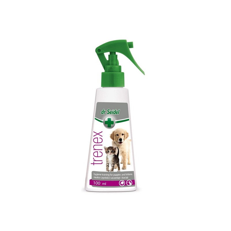 Trenex to płyn ułatwiający naukę czystości u szczeniąt. Jego zapach skłania szczeniaka do załatwiania się w wyznaczonym miejscu.