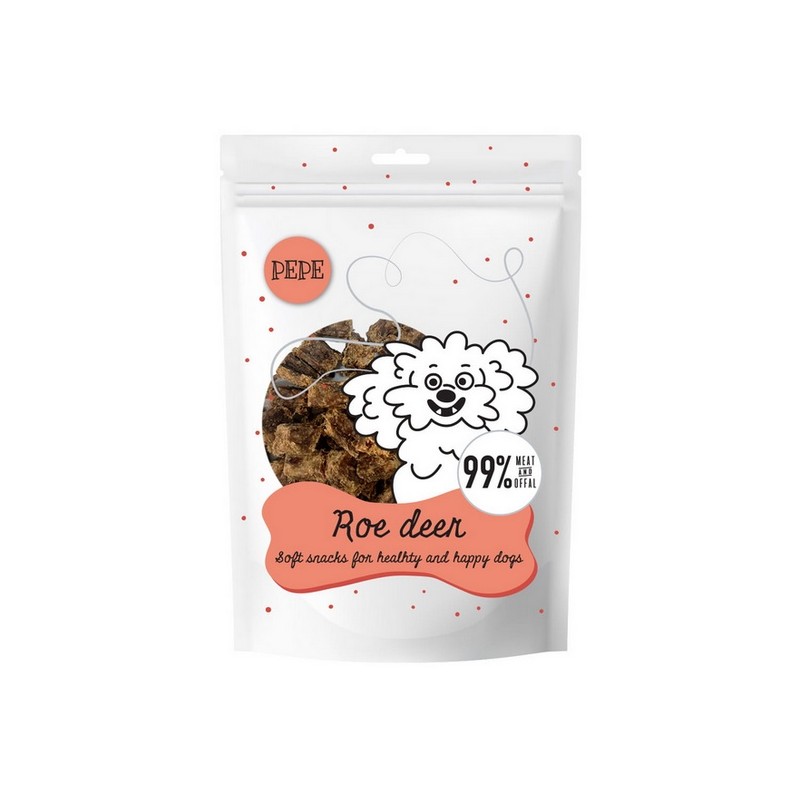 Małe, miękkie kawałki 8 x 8 mm wykonane ze świeżo przygotowanego mięsa sarny oraz podrobów. Mięso pochodzi z europejskiej produkcji (hodowli prowadzonej z zachowaniem szacunku, zdrowia i dobrostanu zwierząt).